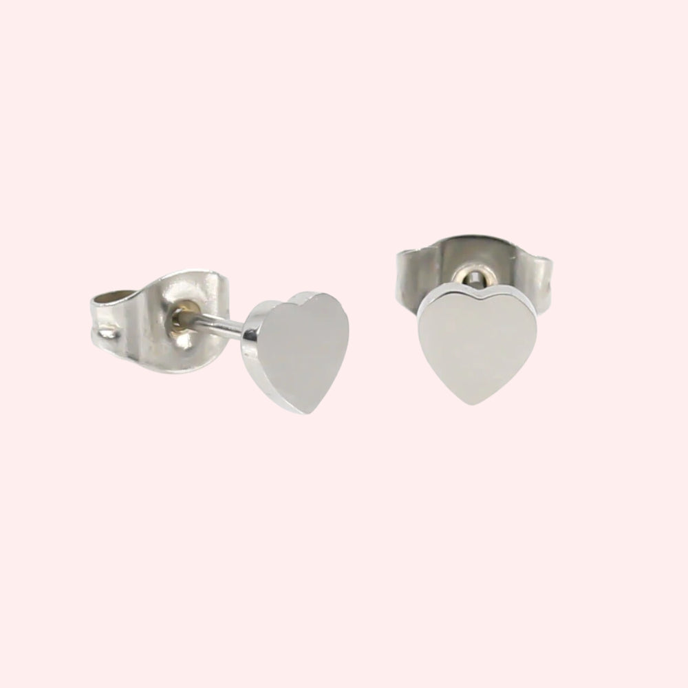 Geometric designs are always popular such as our mini crescent moon, star or triangle shaped allergy free earrings. One of the most desirable choices is of course the timeless love heart. Both our regular love heart and mini open heart shaped studs are available as silver stud earrings or gold stud earrings.