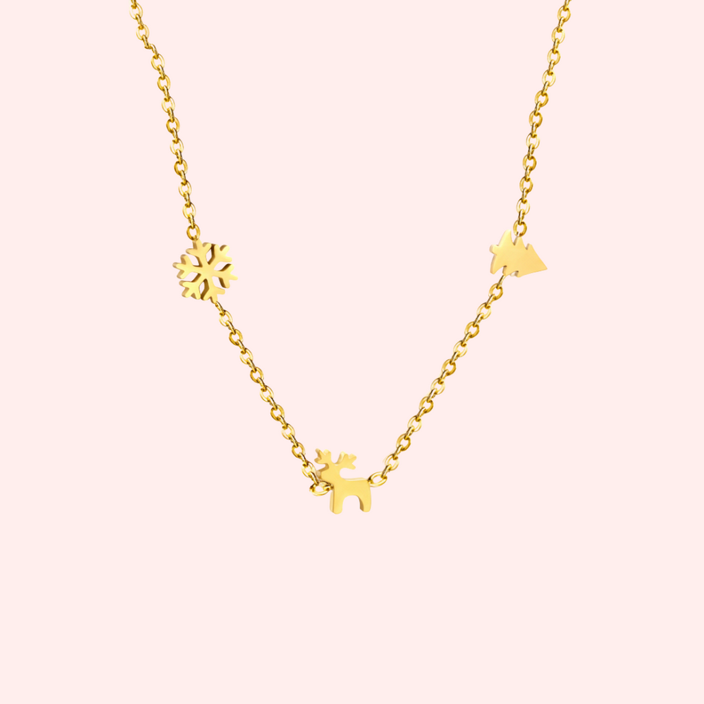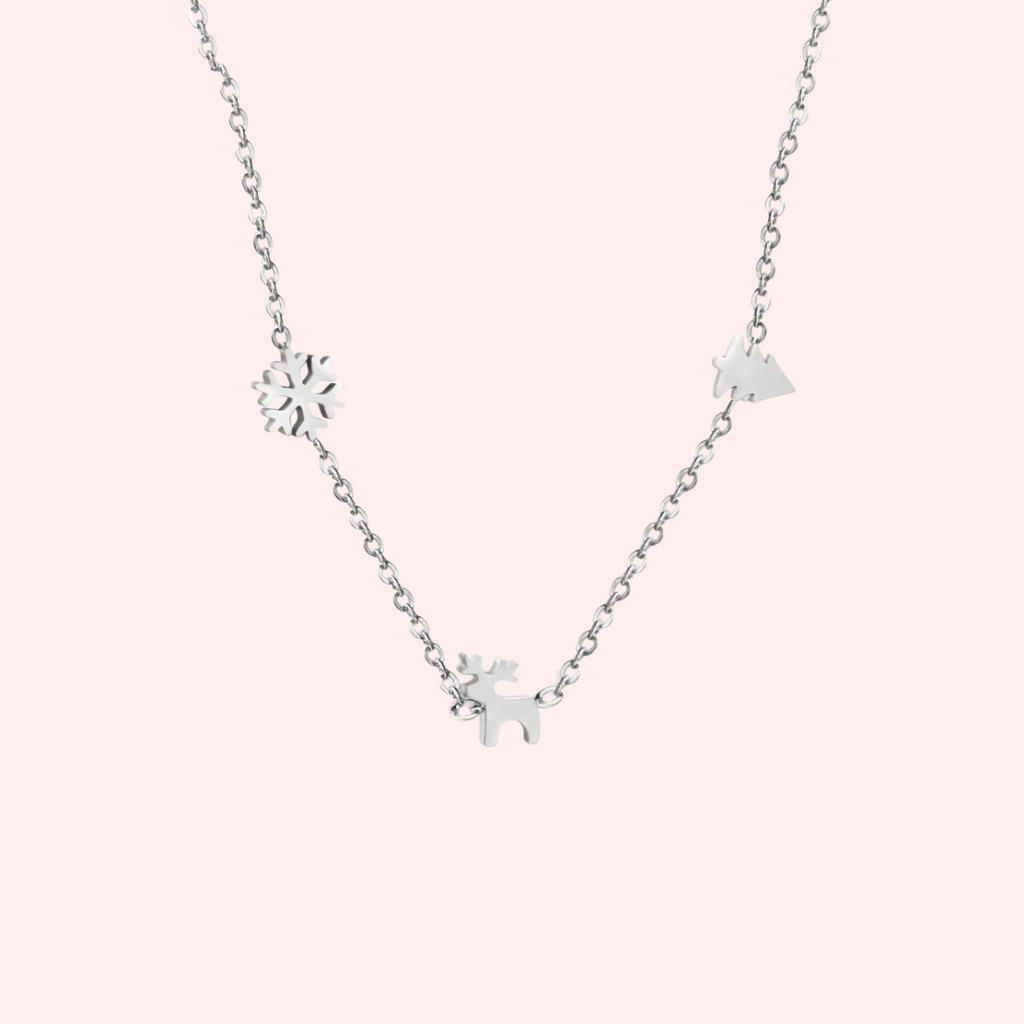 Complete with a reindeer, Christmas tree, and snowflake charm, this necklace is lightweight, easy to wear, and the perfect finishing touch for every holiday look.