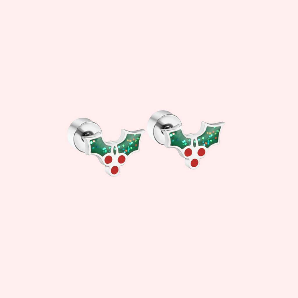 Deck your ears with holiday cheer! Our Holly Hypoallergenic Flat Back Earrings bring the sparkle of Christmas holly to your everyday style.