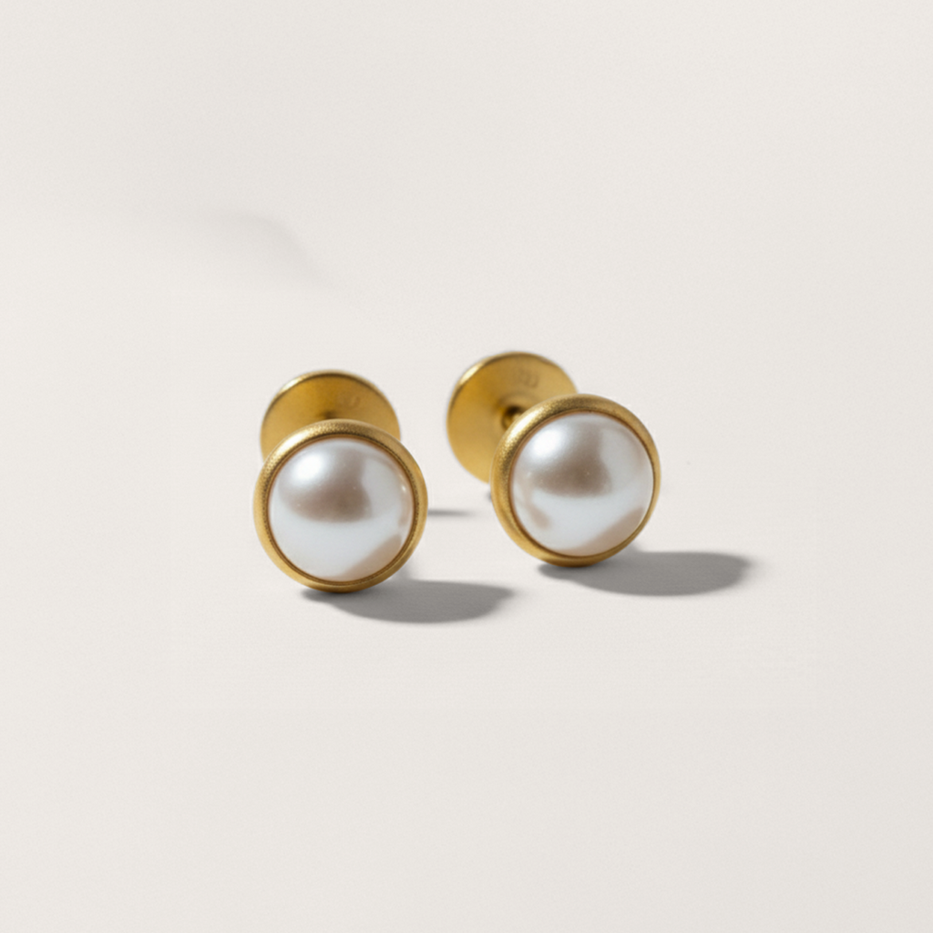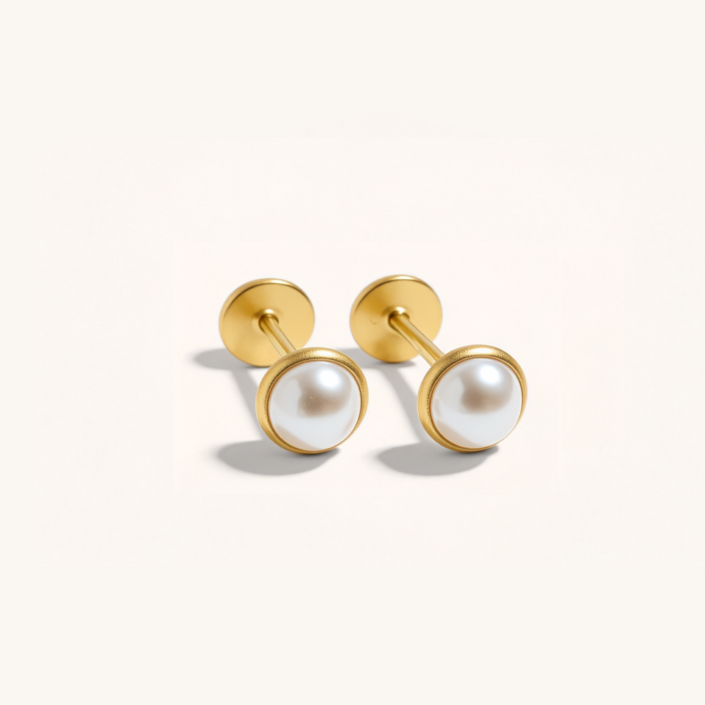 Add a touch of classic elegance with the Pearl Bezel Set Flat Back Earrings.Perfect for layering or wearing alone in silver or gold.