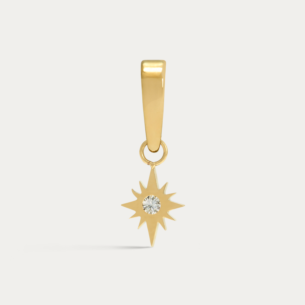 Make it personal. This shining star charm features a sparkling CZ at its centre, a symbol of guidance, hope, and inspiration.