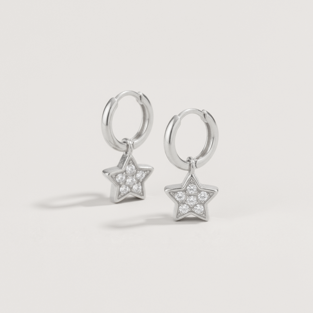 Shine bright with the Sparkle Star Charm Hoop Earrings.