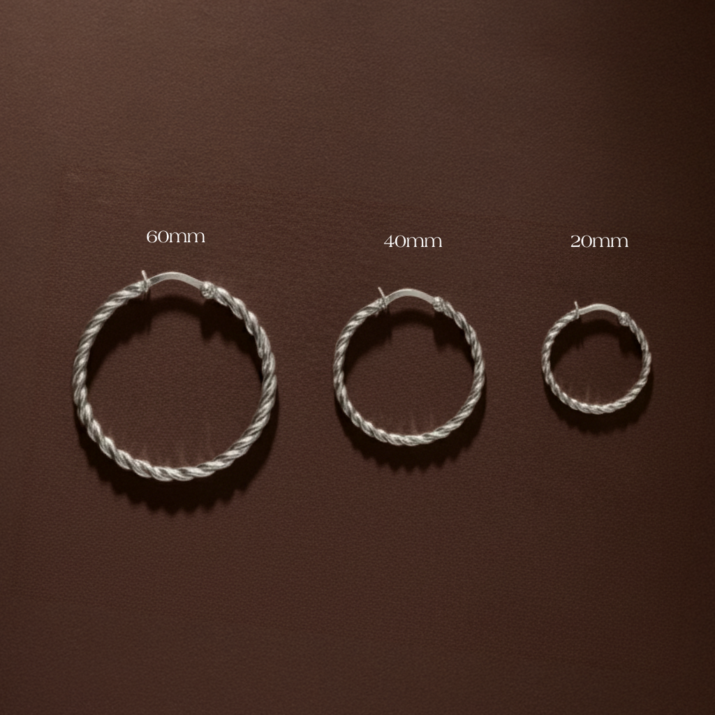 Make a statement with the Twisted Hoop Earrings. Three sized hoops in silver and gold - perfect worn alone or stacked with your favourite Solace pieces.